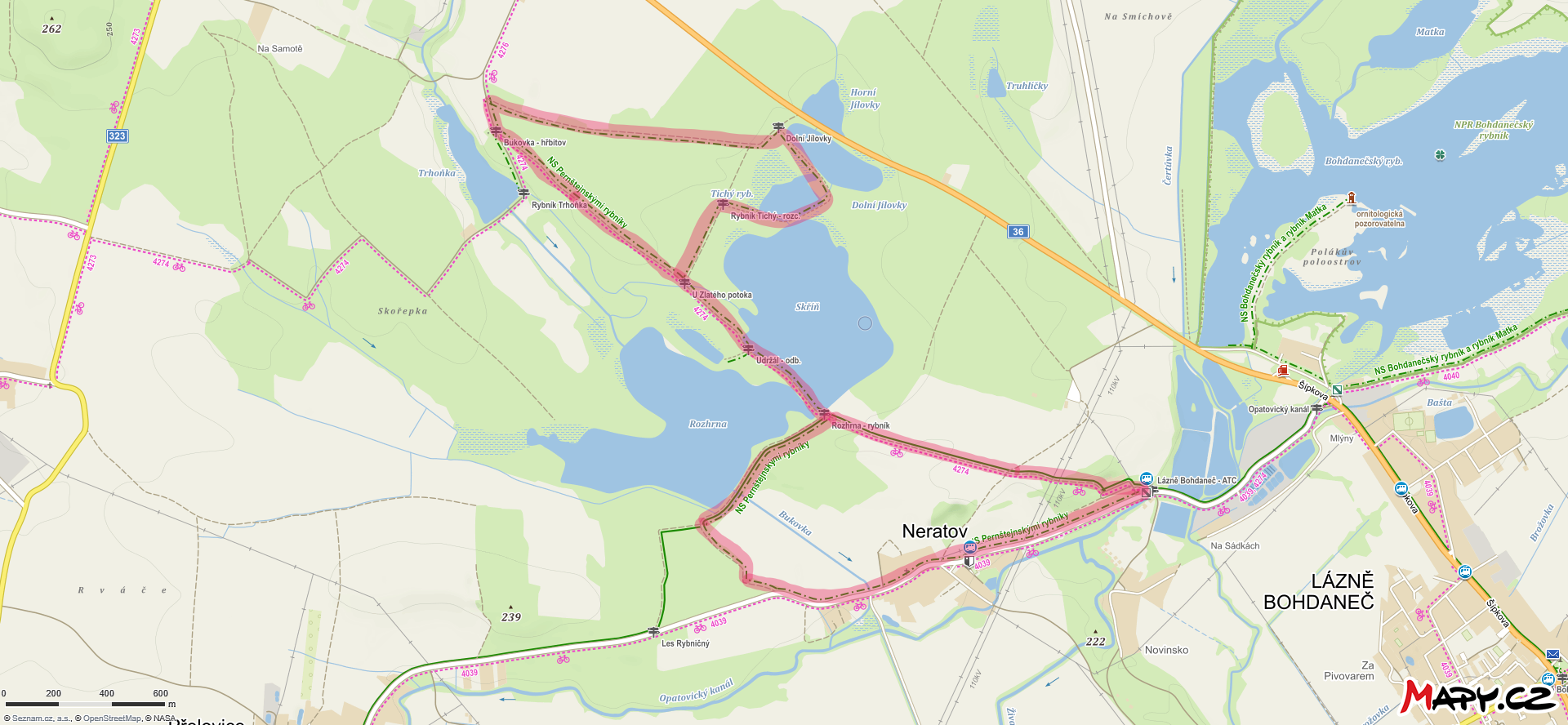 Trasa začíná v obci Neratov a zároveň funguje jako naučná stezka – prostřednictvím informačních tabulí návštěvníky seznamuje s historií a současností zdejšího rybníkářství a rozmanitostí okolní přírody. Nenáročný terén vás postupně přivede k několik rybníkům – Trhoňka, Skříň, Dolní Jílovky, Horní Jílovky, Tichý rybník, Rozhrna.
